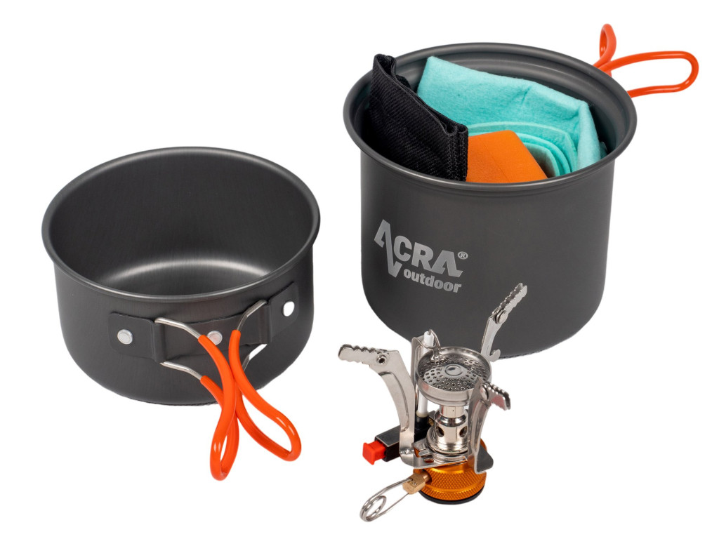 Sátor alatt vagy kempingben szeretne időt tölteni? Könnyítse meg az ételkészítést, és szerezze be az ultrakönnyű és kompakt Acra C23-as edénykészletet . A praktikus összecsukható fogantyúknak köszönhetően helyet takaríthat meg hátizsákjában. Használja a készletet ebéd vagy vacsora elkészítéséhez akár 2 fő részére. Túrázásra, kempingezésre, piknikezésre alkalmas.