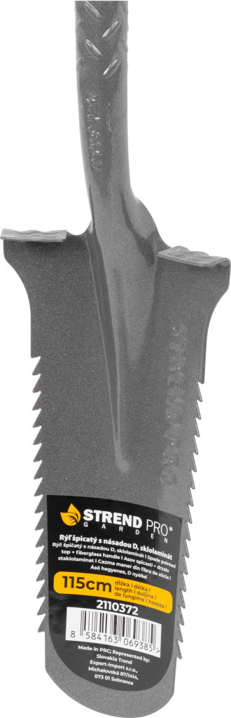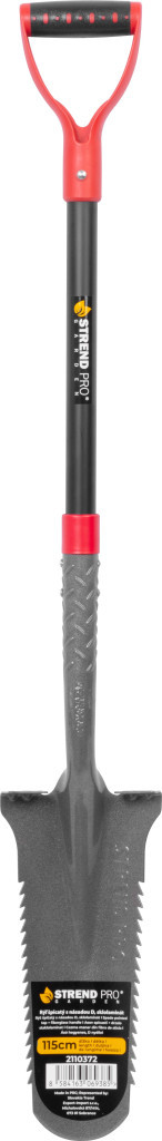 A Strend Pro Garden Prémium ErgoBULL ásó megkönnyíti a kerti feladatokat: fogazott, keskeny acélfeje pontos vájatokat ás, miközben a vízelvezető nyílásoknak köszönhetően a föld nem tapad rá. A 115 cm hosszú, üvegszálas nyél könnyű, mégis erős, a D alakú, csúszásmentes fogantyú pedig biztos tartást ad nedves talajon is. Mindössze 1,93 kilogrammos súlya miatt hosszan használható anélkül, hogy megterhelné a kart vagy a hátat.