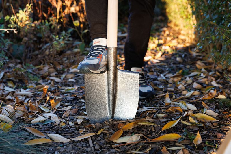 • Helyezd a hegyes lapot a talajra, majd lábbal nyomd le a penge felső élét