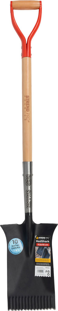 A Strend Pro Premium RedShark egyenes ásóval a kemény talaj sem jelent akadályt. A 115 cm hosszú, natúr fa nyél kézre áll, a piros D markolat pedig csúszásmentes fogást biztosít. A kézzel élezett, fogazott szénacél penge könnyedén vágja át a gyepszegélyt és a makacs gyökereket is. Az 1,77 kg-os súly optimális erőátvitelt teremt, így a kertépítés, ültetés vagy tereprendezés gyorsabban, kevesebb fáradtsággal végezhető. A 10 év garancia a tartósság záloga.