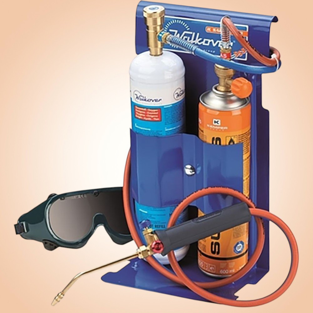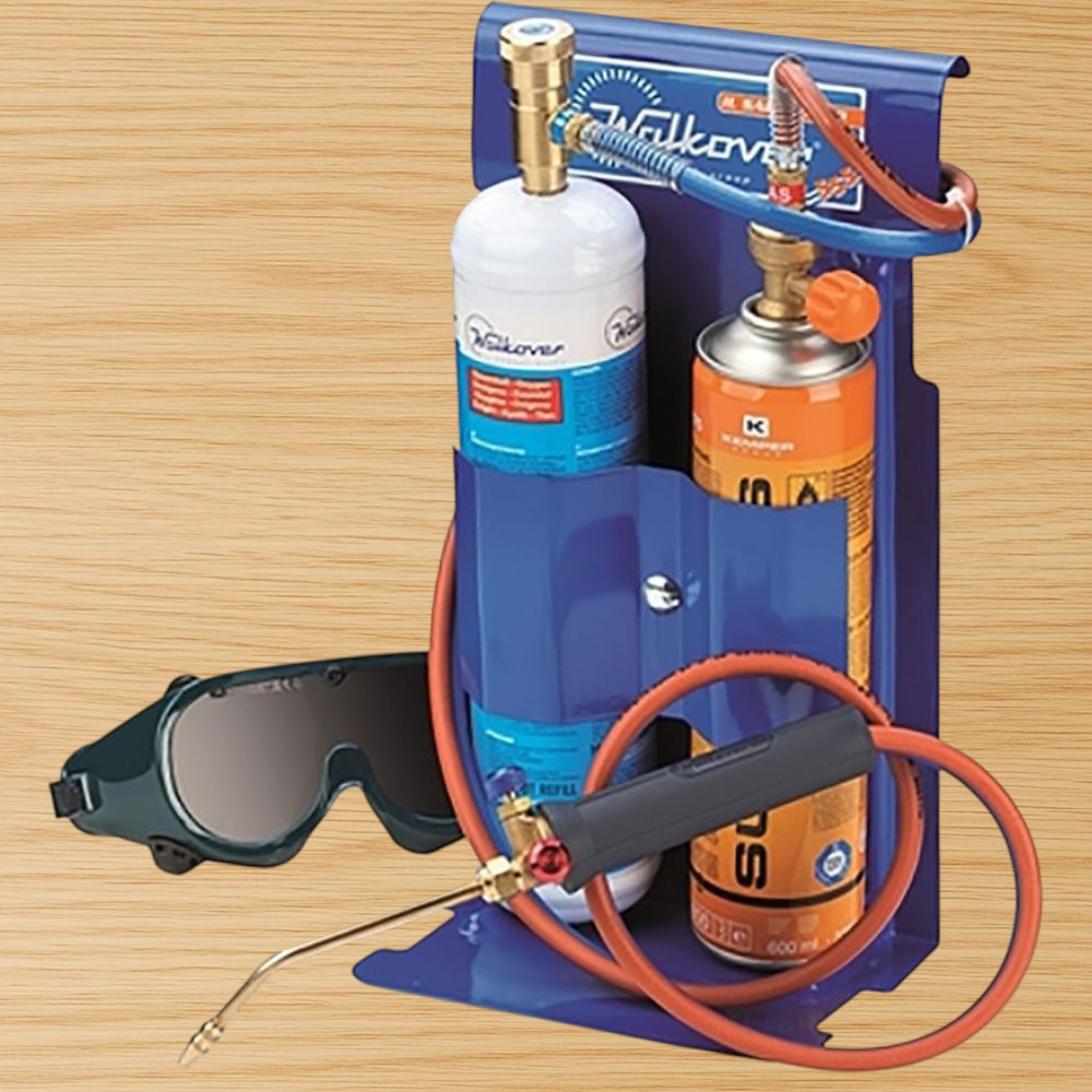 A professzionális csomag minden szükséges alkatrészt tartalmaz, hogy azonnal munkához láss: reduktorok, szelepek, két különböző fúvóka és védőszemüveg egyetlen, átlátható állványon. A kézre álló fogantyú pontos gázkeverést tesz lehetővé, így akár 1 mm-es lemezek, akár 2 mm-es huzalok hegesztése is stabil, fröcskölésmentes eredményt hoz. Egy patronnal 1–2 óra folyamatos üzemidő érhető el, a láng intenzitásától függően, ami bőven elegendő a legtöbb helyszíni javításhoz.