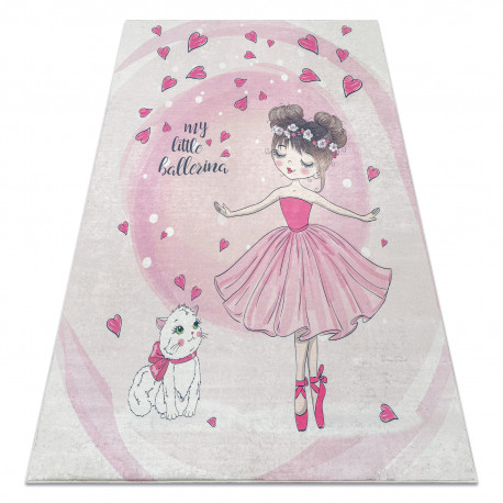 Kab. BAMBINO 2161 mosható szőnyeg Balerina, cica gyerekeknek csúszásgátló - rózsaszín 80x150 cm