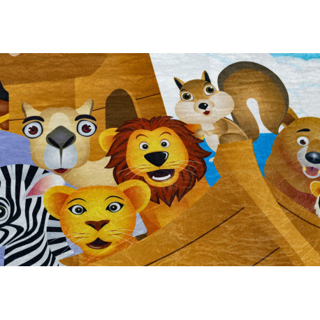 Kab. BAMBINO 2685 mosható szőnyeg Állatok, Hajó gyerekeknek csúszásgátló - kék / barna  80x150 cm