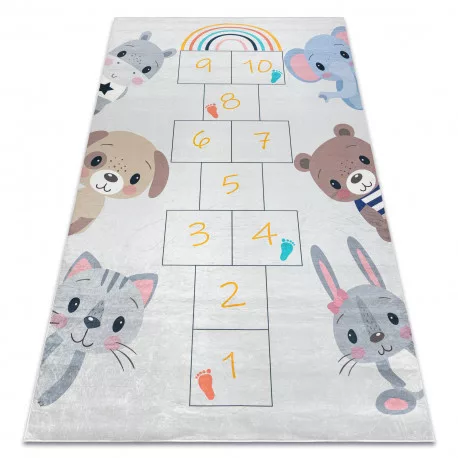 Kab. BAMBINO 43092 mosható szőnyeg Állatok, komló gyerekeknek csúszásgátló - rózsaszín / sárga 80x150 cm