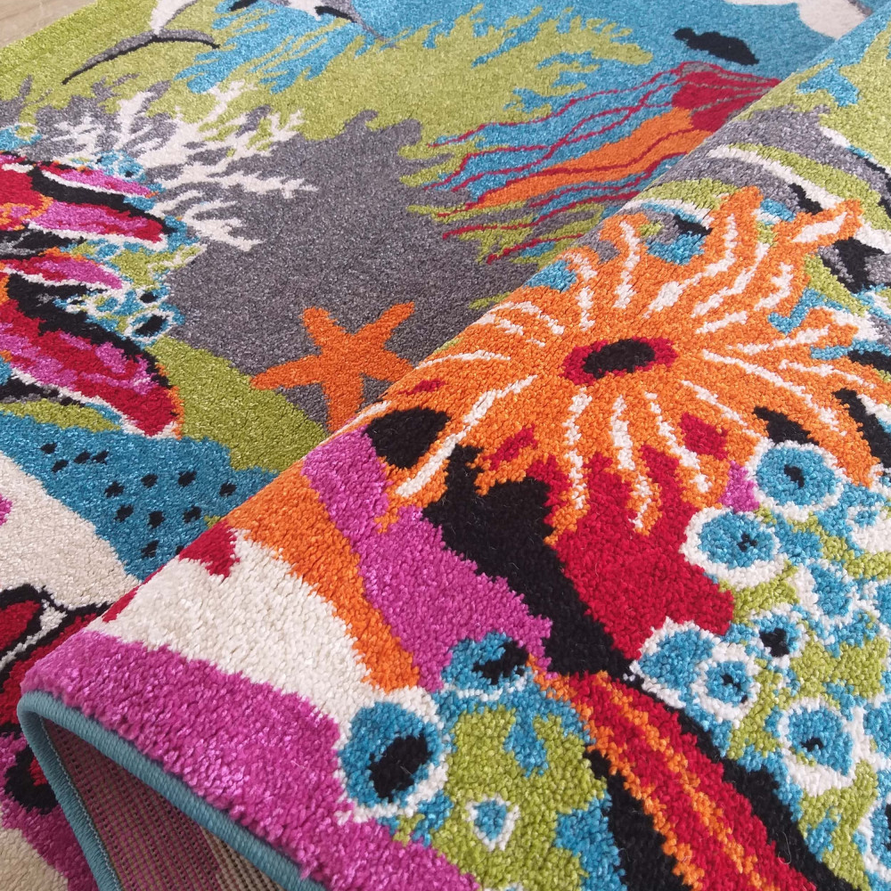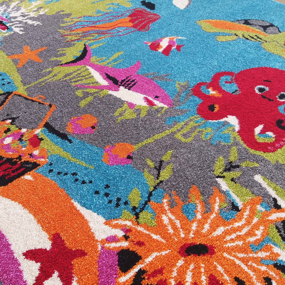 Bella gyerekszőnyeg vidám színösszeállításban, 200 x 290cm méretben. A strapabíró szintetikus szálból szőnyeg kényelmes vastagsággal gondoskodik a kellemes lépésérzetről és játékkomfortról. Tökéletes választás gyerekszobába, hiszen puha, meleg és biztonságos felületet biztosít. A szőnyeg rendszeres porszívózással és enyhén nedves ruhával könnyedén tisztán tartható.
