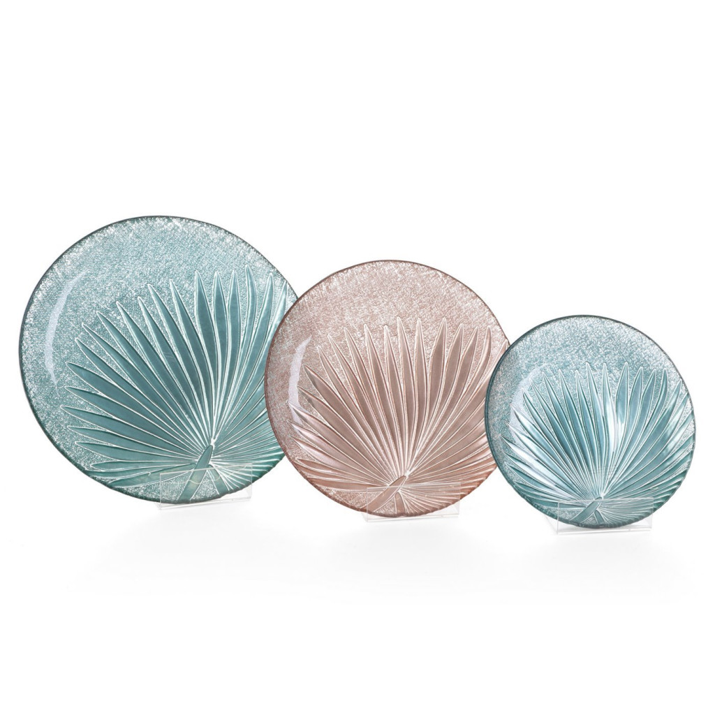 Bena műüveg tál pálmalevél motívummal Menta 33x4 cm