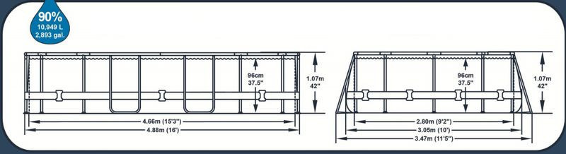 A Bestway® Power Steel™ ovális csővázas medence 4,88 x 3,05 x 1,07 m-es méretével családi fürdőhelyet varázsol a kertbe. A háromrétegű DuraPlus™ oldalfalak poliészter hálóval erősített, vastag PVC-ből készülnek, így ellenállnak az UV-sugaraknak és a mechanikai igénybevételnek. A korrózióálló acélvázat a Seal & Lock System™ rögzíti, amely stabil tartást és csepegésmentes csatlakozást garantál. A 10 949 literes vízkapacitás kristálytisztán tartható a mellékelt szűrőszivattyúval.
