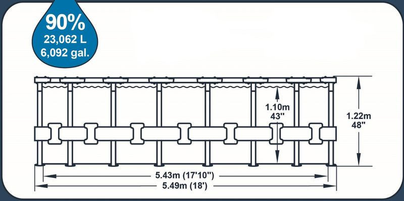 • Méret: átmérő 5,49 m, magasság 1,22 m