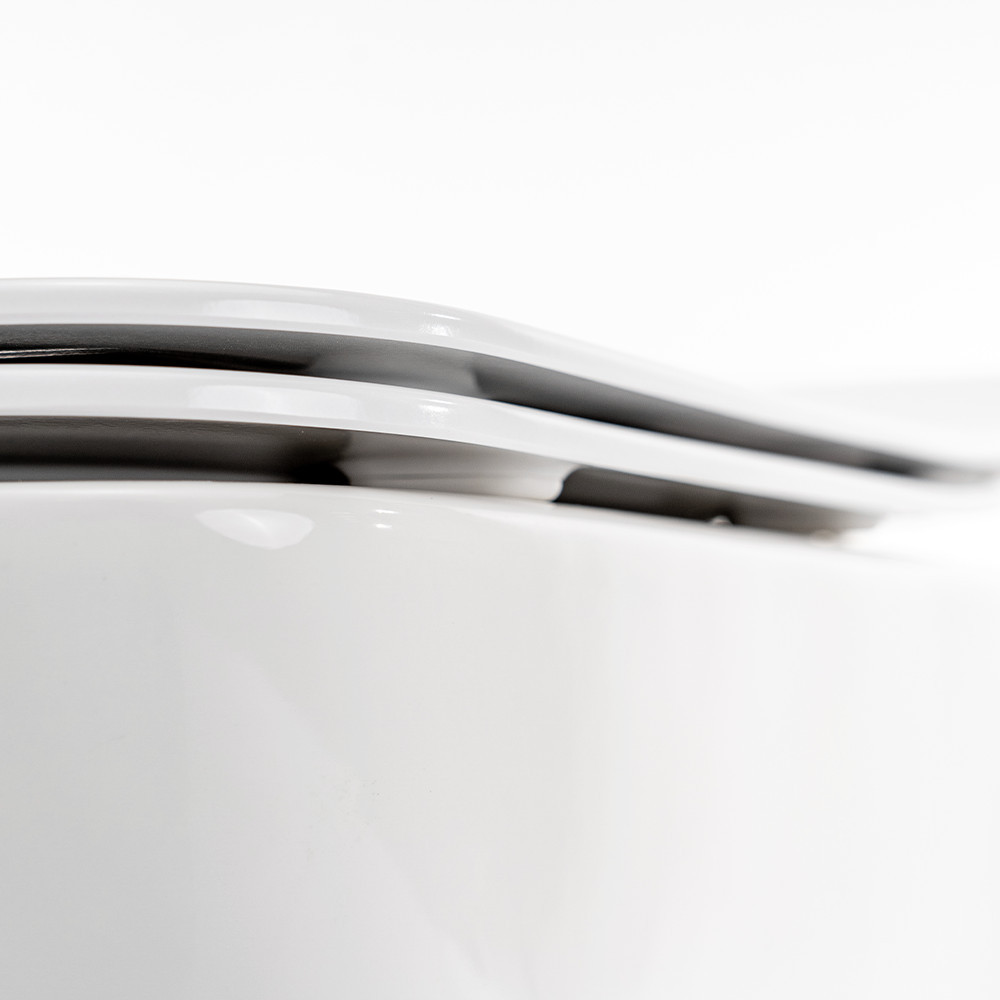 A perem nélküli – rimless – wc-k legfontosabb tulajdonsága, hogy nincsenek rajtuk elérhetetlen zugok, könnyen tisztántarthatók. A speciális kialakítású wc-csésze lehetővé teszi, hogy öblítéskor az örvényszerűen körbeáramló víz a wc teljes belső felületét tisztává varázsolja, kifröccsenés nélkül. Mind a fali, mind pedig az álló WC-k rejtett rögzítéssel készülnek. A szaniter felületén csak egyetlen apró rögzítési pont látható. Ez az esztétikai szempontokon túl könnyű, higiénikusabb tisztítást tesz lehetővé. A wc ülőke tartozéka a terméknek. A doboz tartalmazza a fali rögzítéshez szükséges szerelvénycsomagot.