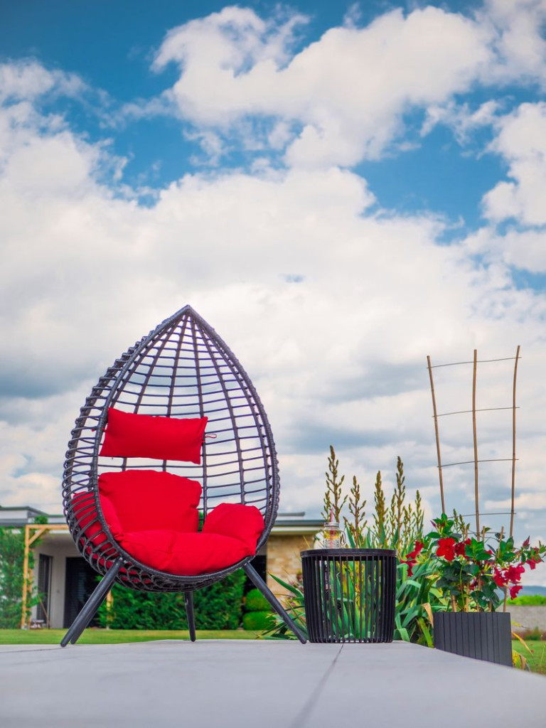 Formatervezett, időtálló polirattan fotel.