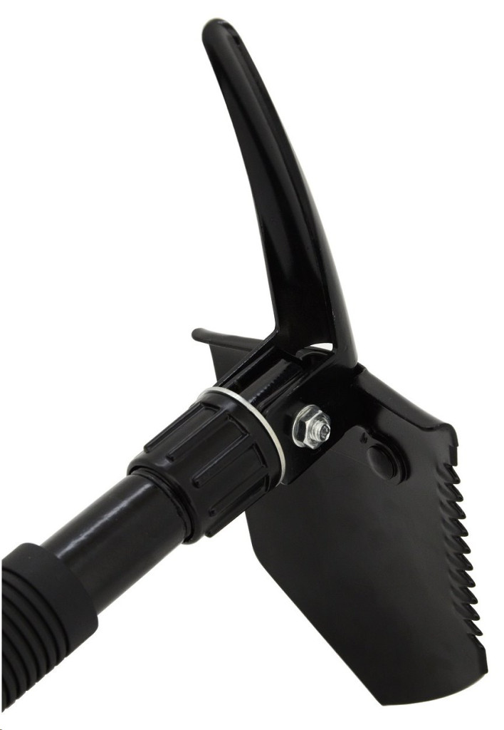 A lapát könnyen összeállítható az egyes részek összecsavarásával. Elég kiválasztani a megfelelő eszközt és előfeszítését, utána egyszerűen rögzítheti a nyélen lévő anyát. Ez mindenellenálló zöld tokban van elhelyezve, amelyet könnyen rögzíthet az övre, tehát a lapát mindig kéznél lesz.
