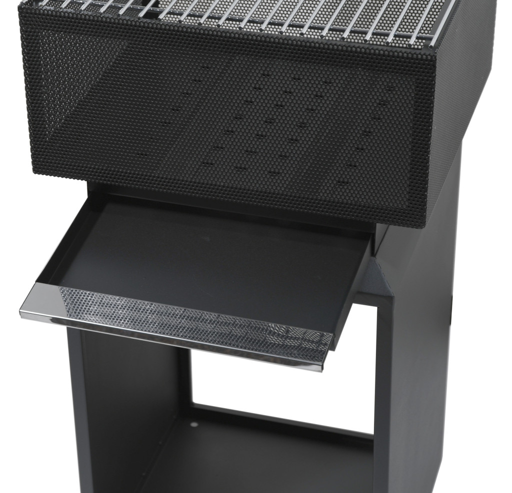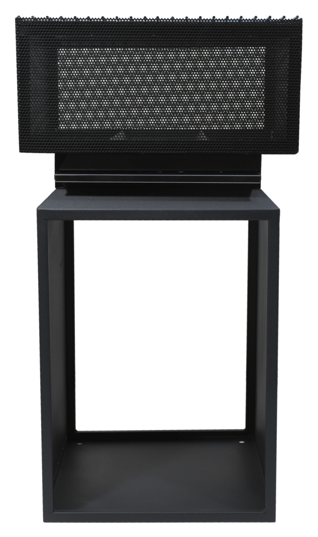 A tűztér szögletes szerkezete kiváló minőségű acélból készült, magas hőmérsékletálló fekete bevonattal. Oldalai perforáltak, és egyedülálló kilátást nyújtanak az égő tűzre. Az alsó részt tűzifa tárolására használja.