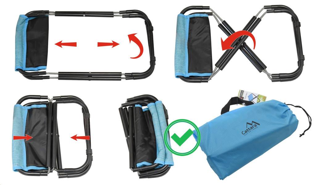 Ha a kempingezésnék, halászásnál, a természetben vagy a kertben le szeretne ülni, nincs jobb az egyszerűen megoldható ülőhelynél a Foldi MAX I kemping szék formájában a Cattara márkától. Egyedi összecsukható mechanizmussal van ellátva, amely gyors összecsukást biztosít a minimális méretekre és a szék könnyű összeállítását.