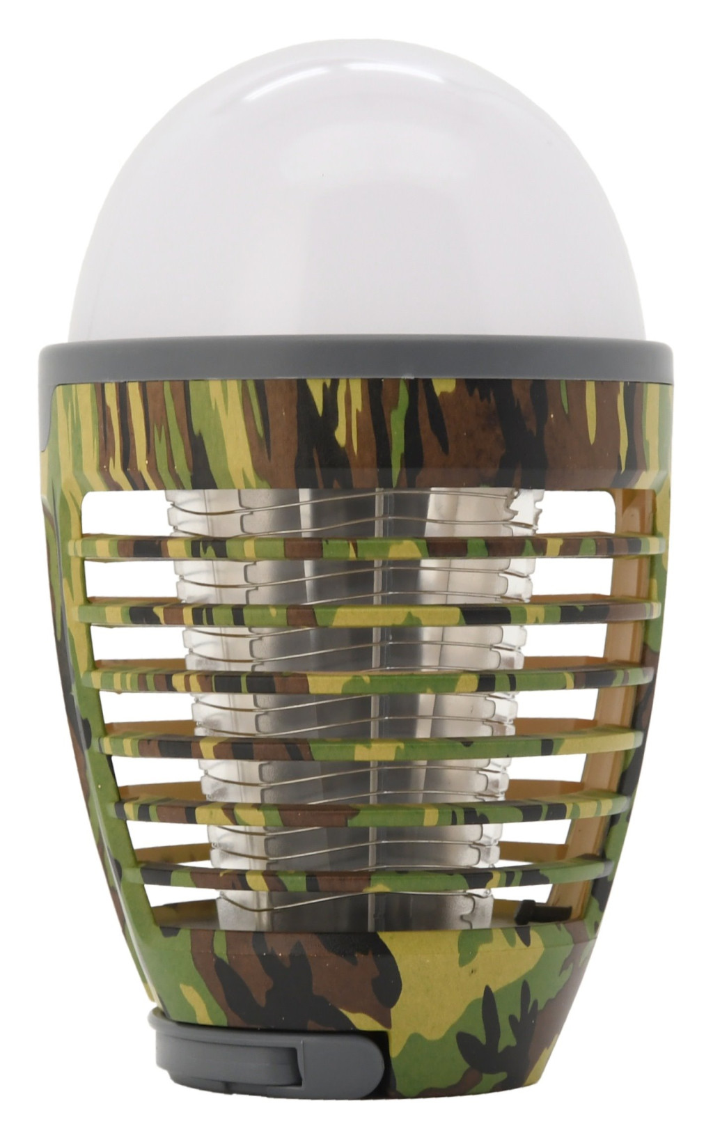 Újratölthető LED-es lámpa és rovarcsapda egyben, kempingezéshez, otthon, kertben, étteremben, irodában stb. használható, az ultraibolya sugarakkal ellátott fény vonzza a csapdába esett rovarokat, fényerő 70 lm.
