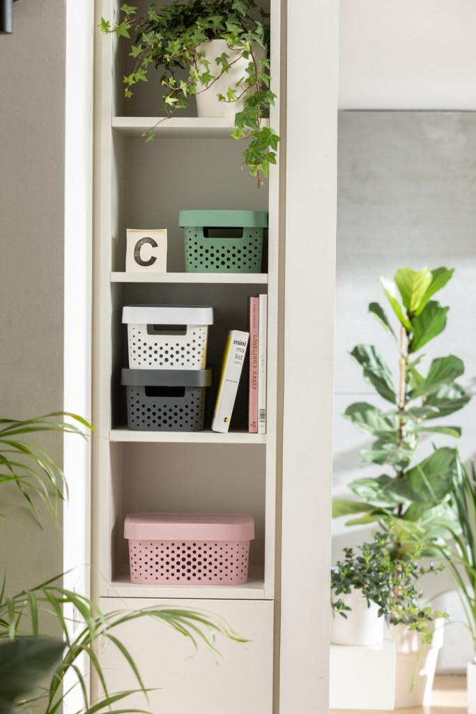 Ez a stílusos és praktikus doboz 100%-ban újrahasznosított műanyagból készült. Ezért környezetbarátabb. A doboz minden fala apró lyukakkal van perforálva. Ezért ideális minden olyan tárgy számára, amelynek a tárolás során légáramlásra van szüksége. A rövidebb falakon két fogantyú található. Használja őket a doboz hordozásához. Ezenkívül kiegészíti a konyha, a nappali, a hálószoba és a fürdőszoba berendezését.