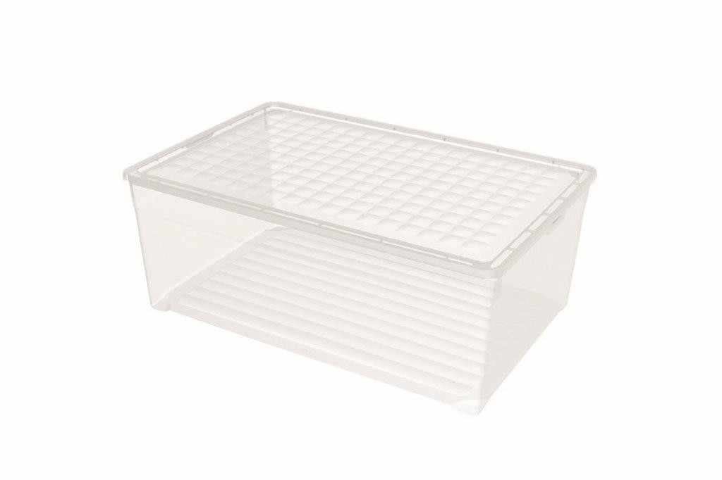 A praktikus, átlátszó Curver tárolódoboz segít rendet tartani a ruhásszekrényben és az otthonban. 45 literes űrtartalmának és lapos kialakításának köszönhetően ideális nagyobb textíliák, ágyneműk és egyéb kiegészítők tárolására.
