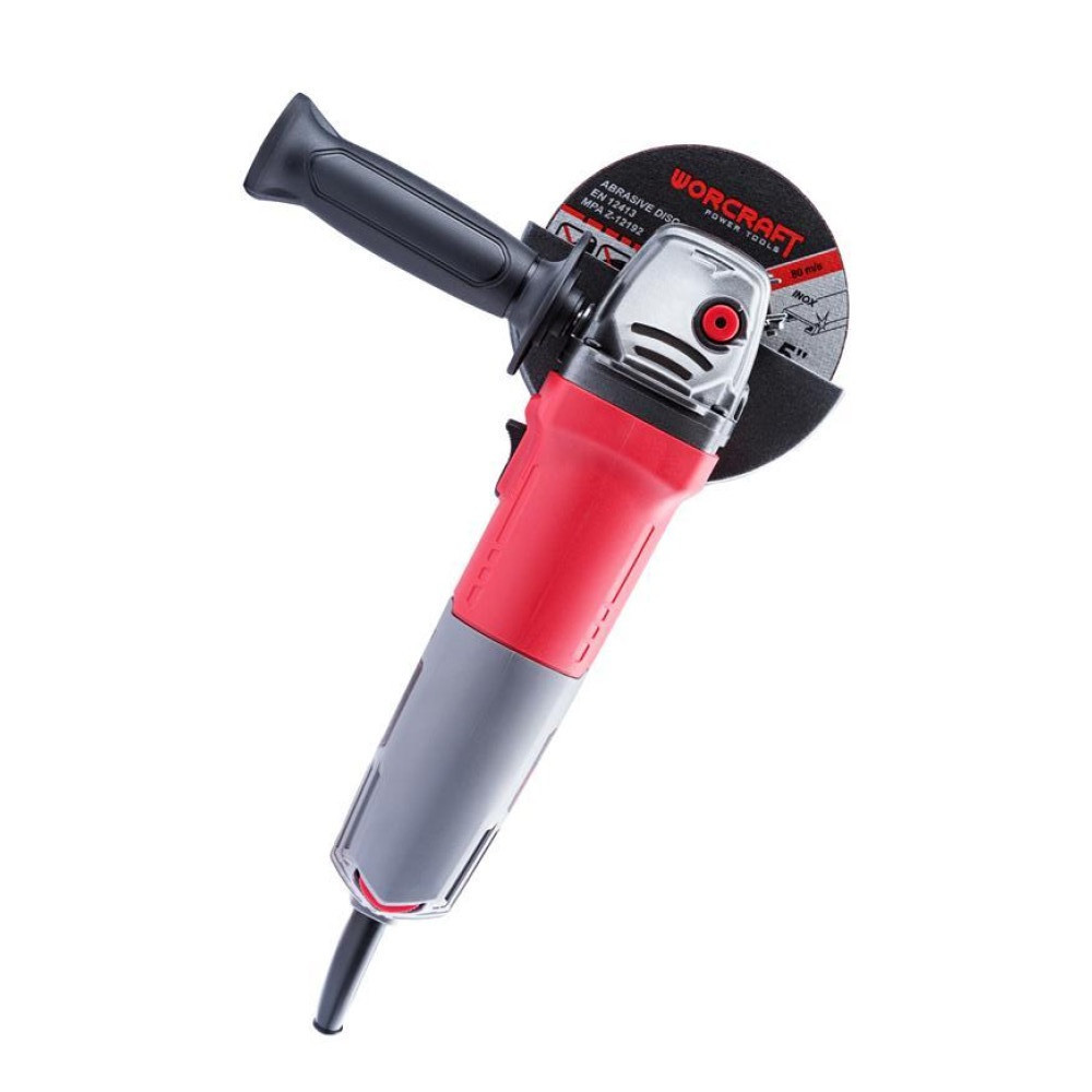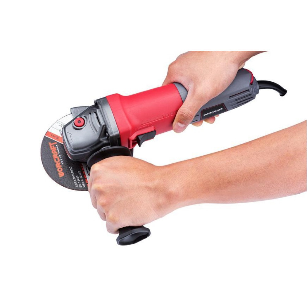 A Worcraft AG08-125S sarokcsiszoló 820 W teljesítményével és 125 mm-es korongjával gyors, tiszta vágást és sorjátlan csiszolást kínál fémhez, betonhoz vagy burkolólaphoz. Az M14 orsóval egyszerűen cserélhetsz tárcsát, a fordulatszám-szabályozás pedig 0–11 000 ford/perc között illeszti a gépet az adott feladathoz. A masszív alumínium hajtóműház jól vezeti a hőt, a három pozícióban rögzíthető oldalfogantyú és a csúszásmentes főmarkolat stabil irányítást ad, így hosszabb munkák során is kényelmes marad a használat.
