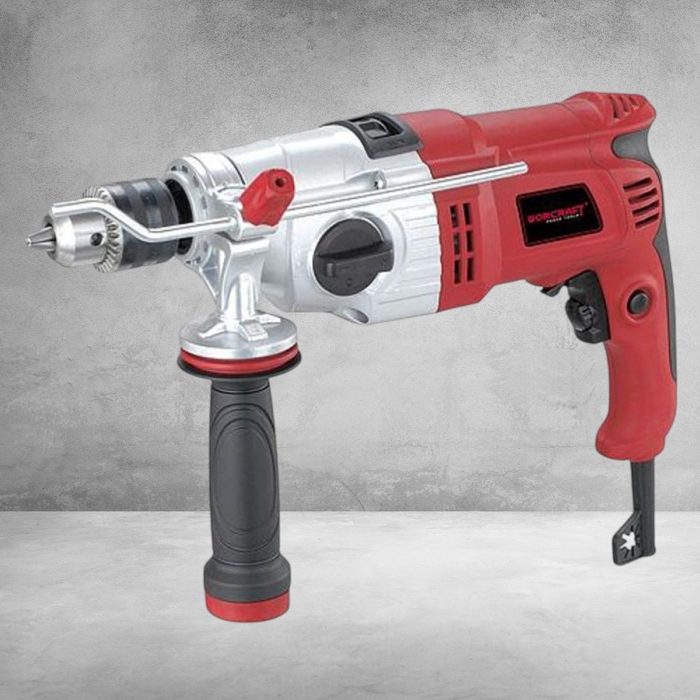 Előtted a Worcraft ID-1050 ütvefúró, amely 1050 W-os motorjával és masszív fém házával igazi mindenes társ, ha betont, téglát vagy épp acélt kell megdolgoznod. A kétfokozatú mechanikus áttétel (0–1100 / 0–2800 ford./perc) és a precíz fordulatszám-szabályzó kerék pontos irányítást nyújt, így a puha fában ugyanúgy tiszta furatot készítesz, mint a kemény betonban. A 16 mm-es kulcsos tokmány stabilan fogja a szárat, a csúszásmentes oldalfogantyú és a mélységütköző pedig biztos tartást és állandó fúrási mélységet garantál.