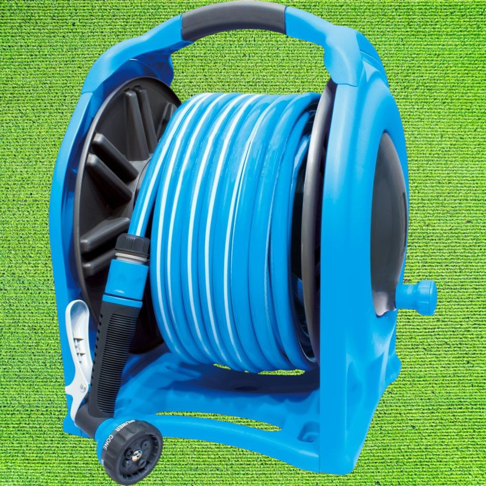 Ez a komplett locsolókészlet a gondtalan öntözés kulcsa: a 25 m-es tömlő bőven elég egy átlagos kert bejárásához, a könnyen forgatható dob pedig pillanatok alatt feltekeri a csövet anélkül, hogy gubancolódna. A falra szerelhető kialakításnak köszönhetően nem kell többé földön heverő, elhasalásveszélyes csövekkel bajlódnod. A kényelmes pisztolyfej különböző szórásképeivel minden növény pontosan annyi vizet kap, amennyire szüksége van.