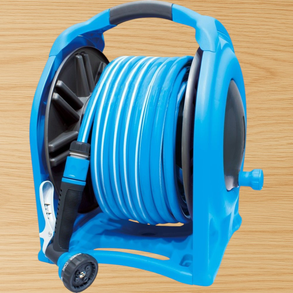 Fali tömlődob, Aquacraft 990076, kék, tömlővel, 1/2", 25 m, szórópisztollyal, csatlakozókkal