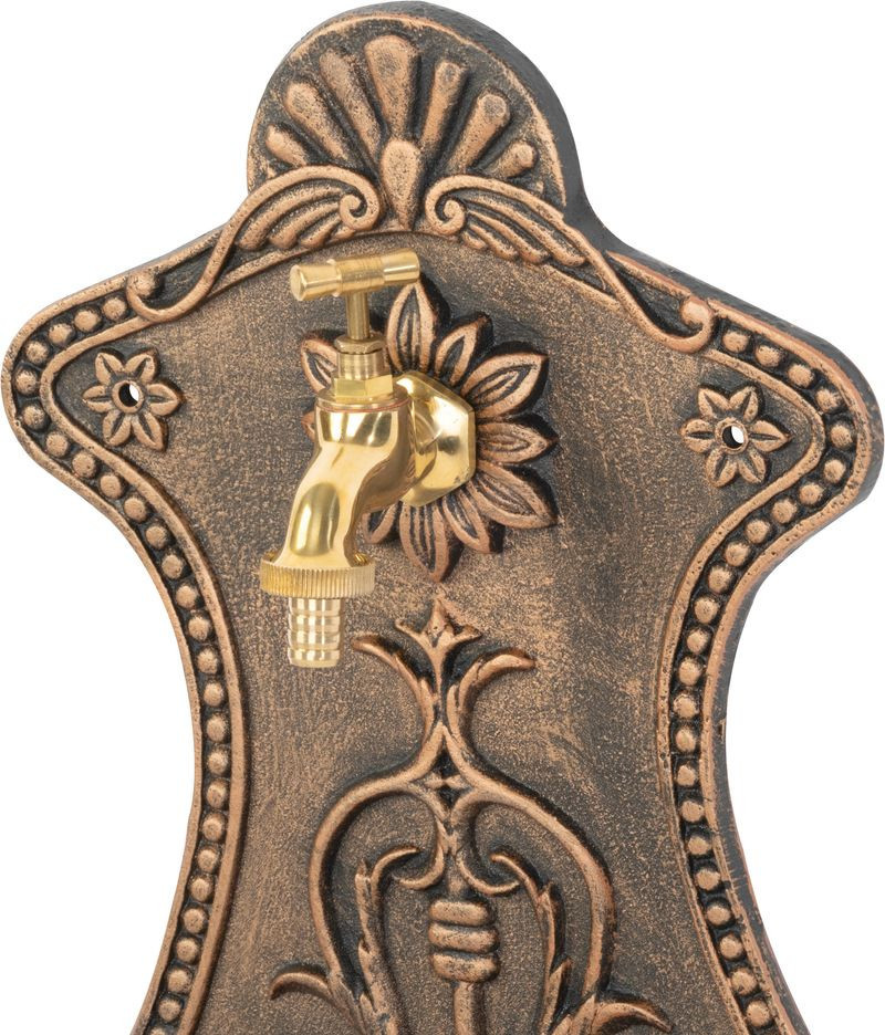 Varázsolj klasszikus kúthangulatot kertedbe a Mosdó Gardens LT-H14299 fali kerti mosdóval! 66,5 cm-es magasságával és 37 cm-es szélességével elegánsan simul a falra, dekoratív domborművei és antik réz árnyalata pedig azonnal magára vonzza a tekintetet. Masszív, időjárásálló alumínium teste ellenáll az esőnek, fagynak és az UV-sugárzásnak, így hosszú éveken át megőrzi patinás báját. Ideális kerti kézmosóhoz, locsolókanna töltéséhez vagy kisebb szerszámok öblítéséhez.