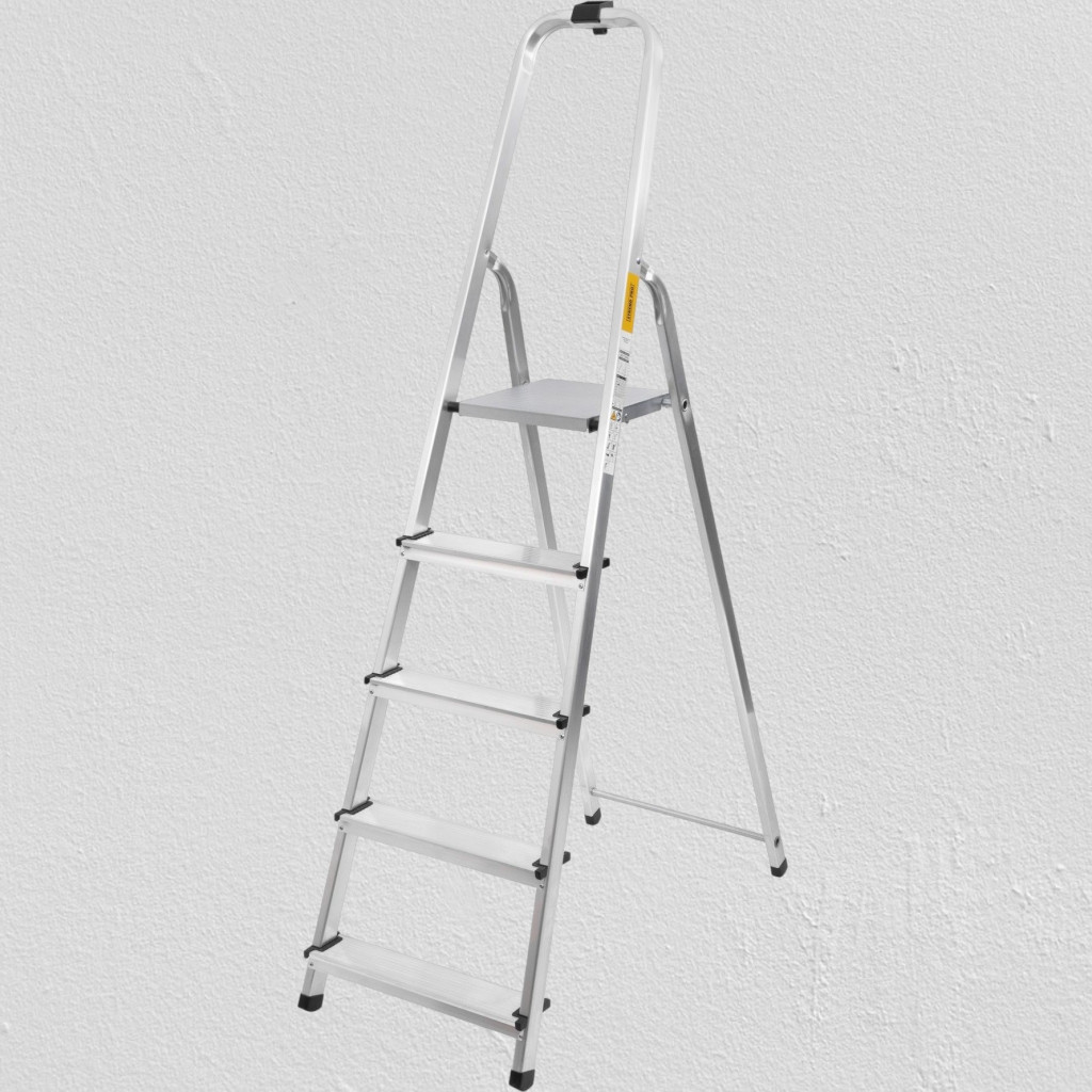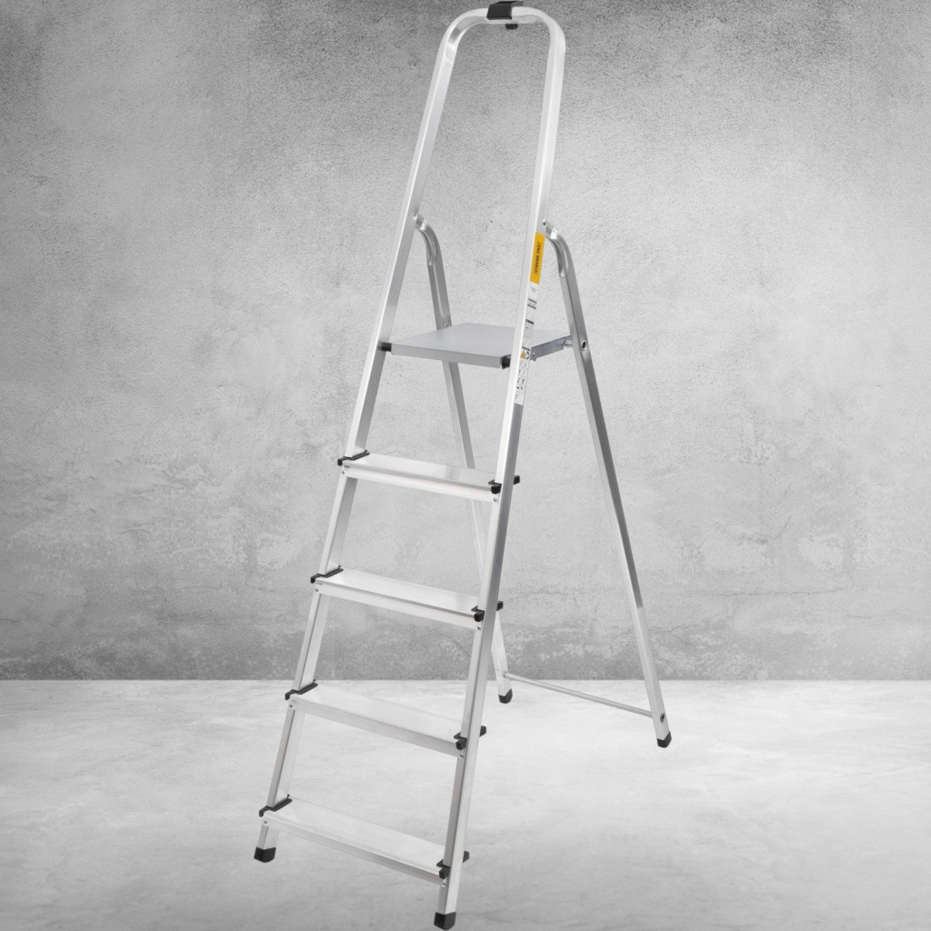 Ez a létra ideális választás, ha megbízható, könnyen kezelhető segédeszközre van szükséged. 125 kg teherbírásával biztonságosan tart, miközben a 0,97 méteres állómagasság kényelmes elérést biztosít a közepes magasságú területekhez. Az alumínium váznak köszönhetően könnyű, korrózióálló és hosszú élettartamú. Tökéletes társ a háztartási és kisebb barkácsfeladatokhoz.