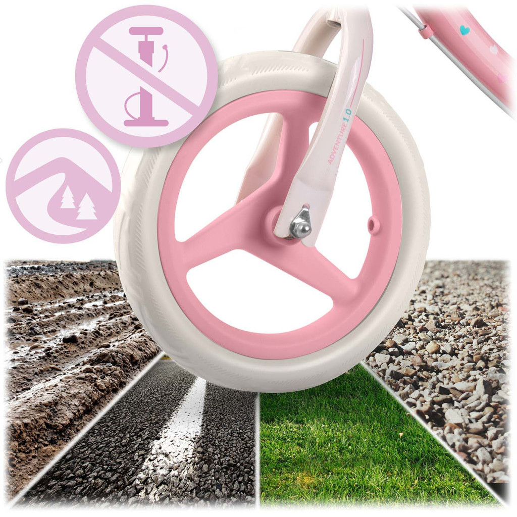 Az ügyes 360°-ban forduló kormány megkönnyíti a szűk fordulókat, a 42 cm-es szélesség stabil irányítást biztosít. A lengyel tervezésű, rózsaszín-fehér dizájn vidám színt visz minden sétába, miközben a gyerek a saját tempójában tanul egyensúlyozni. A könnyű, mégis erős szerkezetnek köszönhetően a pedálos biciklire váltás később természetes és magabiztos lesz.