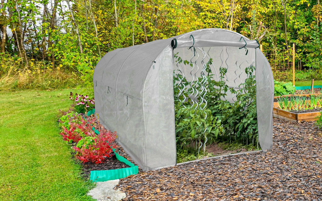 A fóliát megfelelően kifeszítve és az időjárásnak megfelelően szellőztetve a fóliasátorban ideális mikroklímát hozhatsz létre az éppen termesztett zöldség- és gyümölcsfajtának megfelelő fóliasátorban. A hidegebb napokon az ablakok és az ajtók zárva maradnak, így a fóliasátorban melegebb és párásabb a levegő. A mikroklímát az ablakredőnyök felhúzásával vagy a bejárat kinyitásával változtathatod meg.