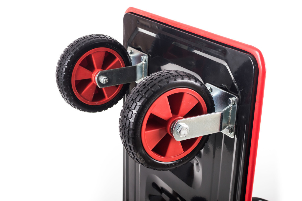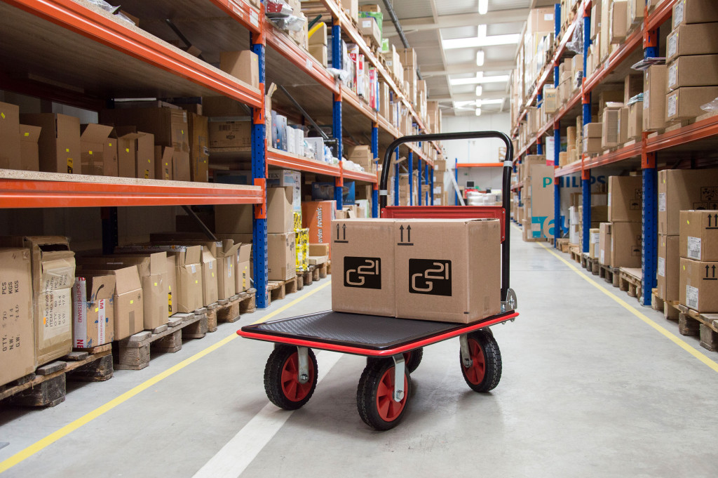 A G21 raktárkocsi 4 kemény gumiból készült kerékkel rendelkezik, melyek nem hagynak maguk után fekete csíkot,  így nem rongálják a padlót. Így ideális akár költözéseknél is.