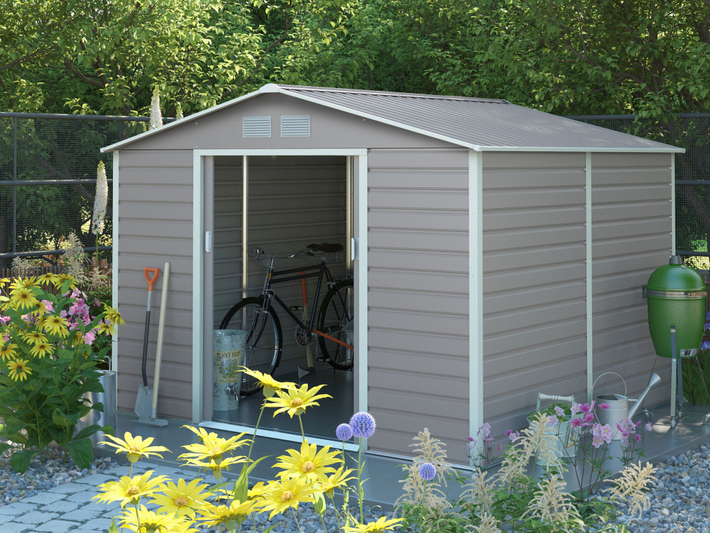 A modern kialakítású kerti házak minden kertbe illeszkednek. A bejárati ajtó elég széles, így kényelmesen tárolhatja szerszámait, kerékpárt  és egyéb kerti bútorait.