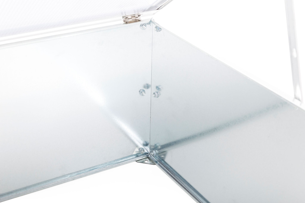 A nyitási folyamatok tökéletesen összehangolva A felső alumíniumkeret 4 mm-es polikarbonát töltelékkelkényelmes hozzáférést biztosít az ültetéshez és a már elültetettnövények gondozásához.