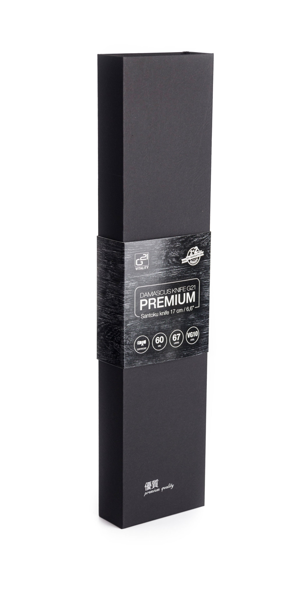 A damaszkuszi acél kettő, vagy több különféle acél egyvelege, mely egy egészet alkot. Ezek eredménye egy nagyon erős, ellenálló, ráadásul törésmentes anyag. Ezen anyagnak köszönhetően a G21 Damascus Premium kés éles, ellenálló, tartós és megfelelő karbantartás mellett több évtizedig is jó szolgálatot tehet.