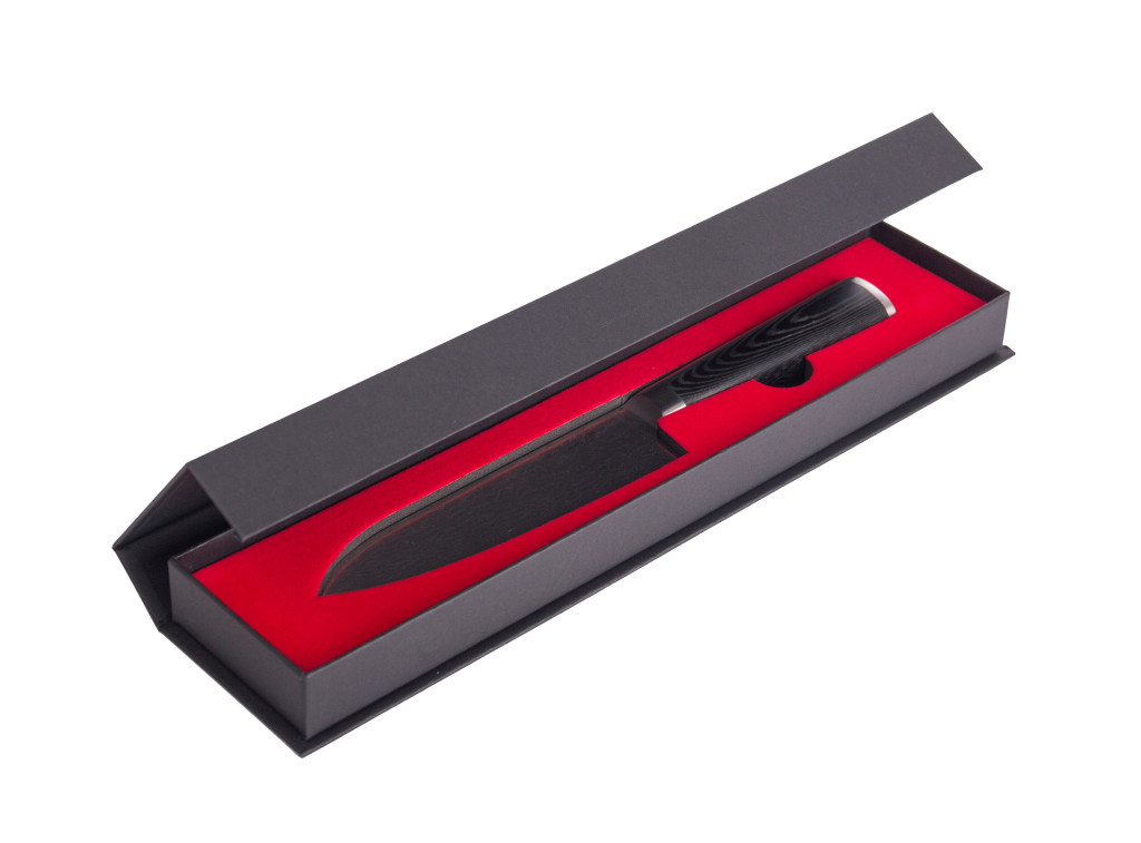 A kés markolata extra erős és ellenálló laminált anyagból készült, ún. Micarta. A Micarta-t egy vászon vagy üvegszövet alkotlja termosztatikus gyantával. Ennek az eredménye az erős, kemény markolat, mely nem enged az idő múlásának. A kés sima, egyenes, tiszta kialakítása minden konyha díszévé válik.