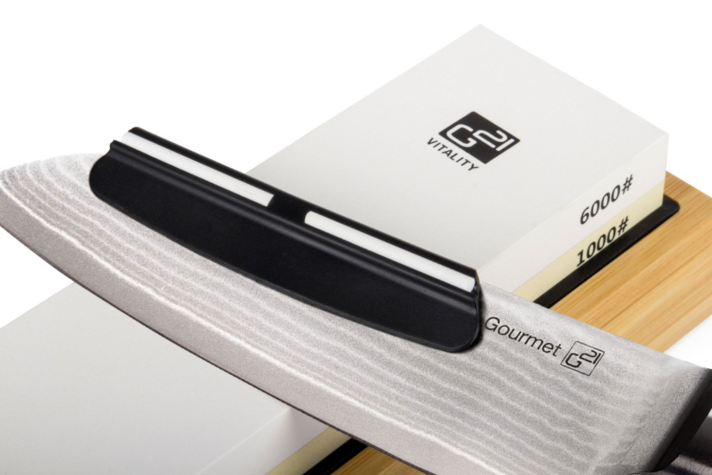 Tudta, hogy főzés közben leggyakrabban egy tompa késsel vágja meg magát? A tökéletesen éles kés a fél siker a konyhában. Ezért adunk ajándékba egy G21 kétoldalas élezőkövet 1000 / 6000-es szemcsemérettel, amellyel tökéletesen megélezhet mindenféle konyhakést, beleértve a damaszkuszi késeket is. A G21 élezőkövet vízzel történő élezésre tervezték.