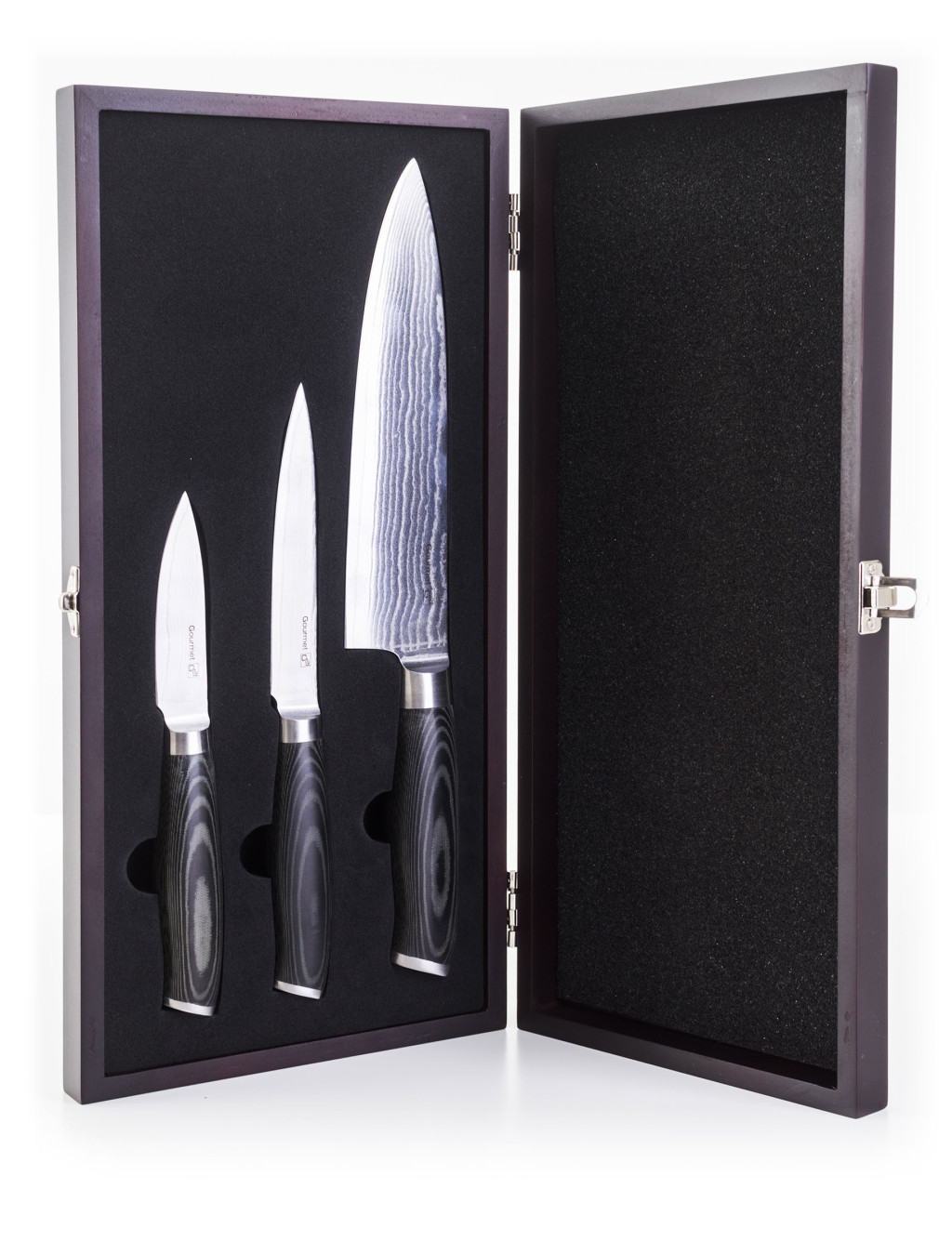 - 1x 3 db G21 Gourmet damaszkuszi késből álló készlet fatokban