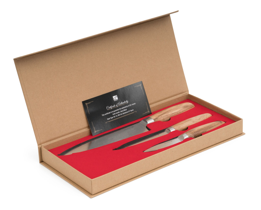 A G21 Gourmet Damascus háromrészes, kiváló minőségű késkészlete damaszkuszi acélból készült, amely megkönnyíti a szeletelést, aprítást és darabolást. A mindennapi főzést szórakozássá varázsolja, amit minden szakács és ínyenc értékelni fog.