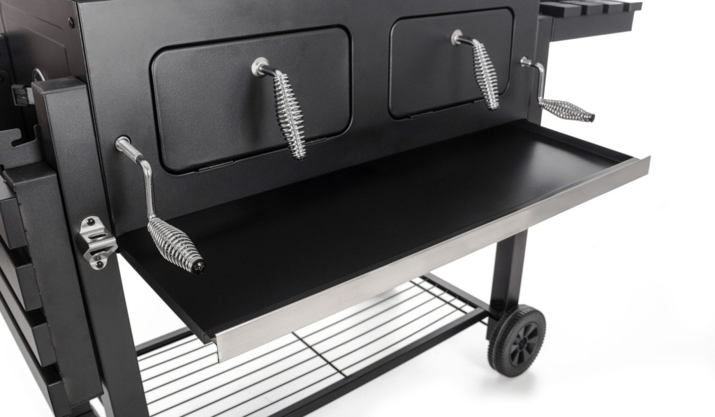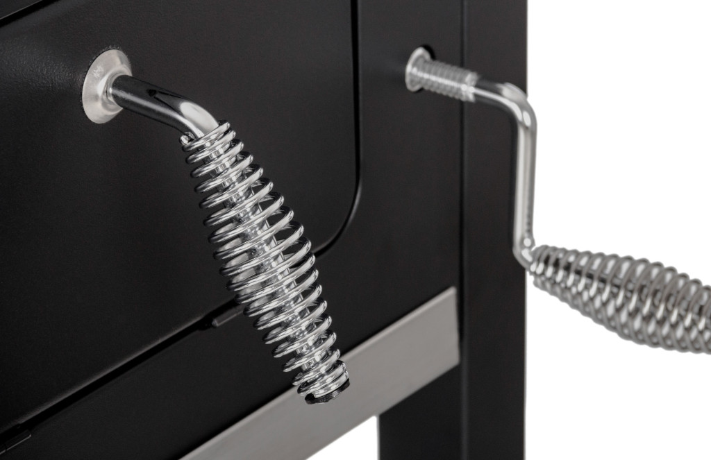A faszenes grill nagy előnye az állítható magasságú sütőkamrák. A grill elülső oldalán található két karral mindkét sütőkamrát felemelheti és leeresztheti úgy, hogy a magasságkülönbség köztük akár 14 cm is lehet.