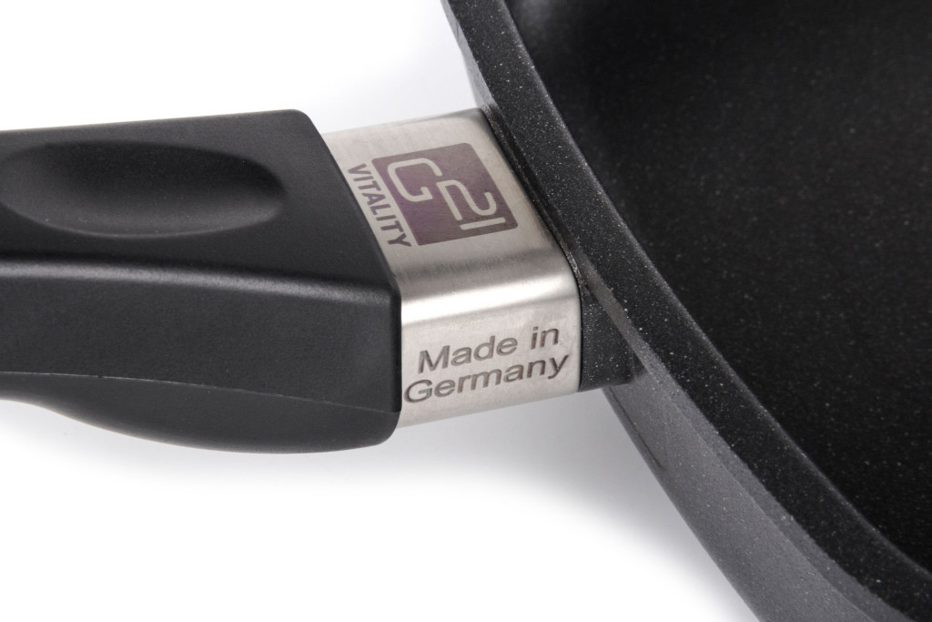 A serpenyőket Németországban gyártjuk kézi öntés segítségével és magas minőségen ez észrevehető.