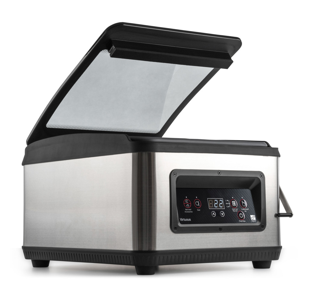 Intelligens vákuumozó kettős szivattyúval a szilárd és folyékony élelmiszerek megbízható vákuumozásához. Vagy a saját 6 literes vákuumkamrájában vákuumozod, vagy használhatsz vákuumtartályokat, konténereket és zacskókat vagy fóliát. Az egyedülálló G21 vákuum speciális funkciókkal is rendelkezik.