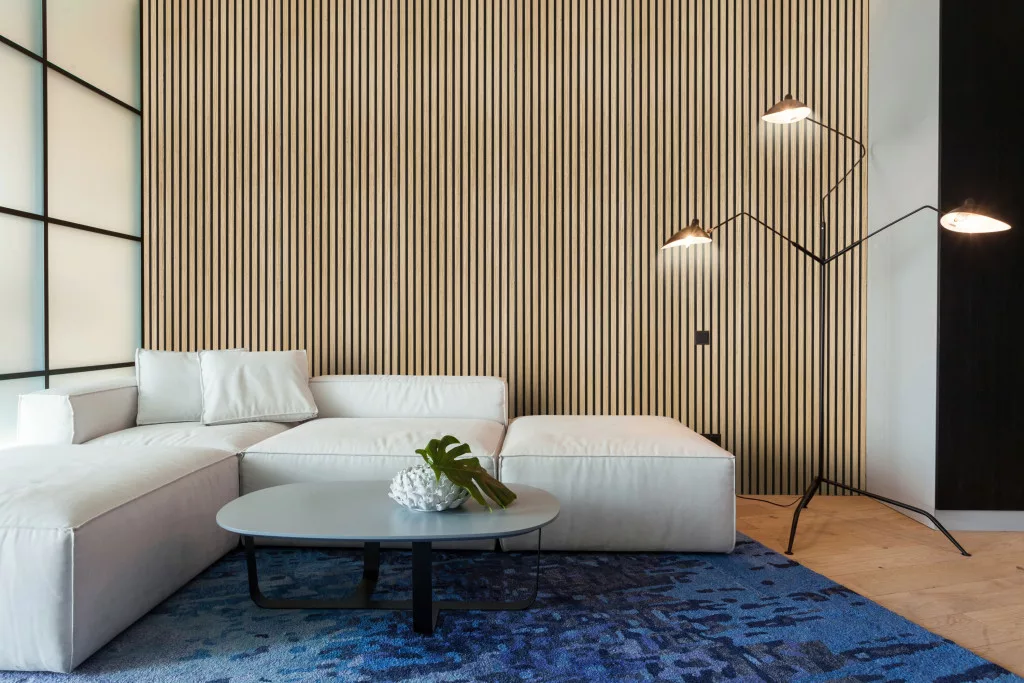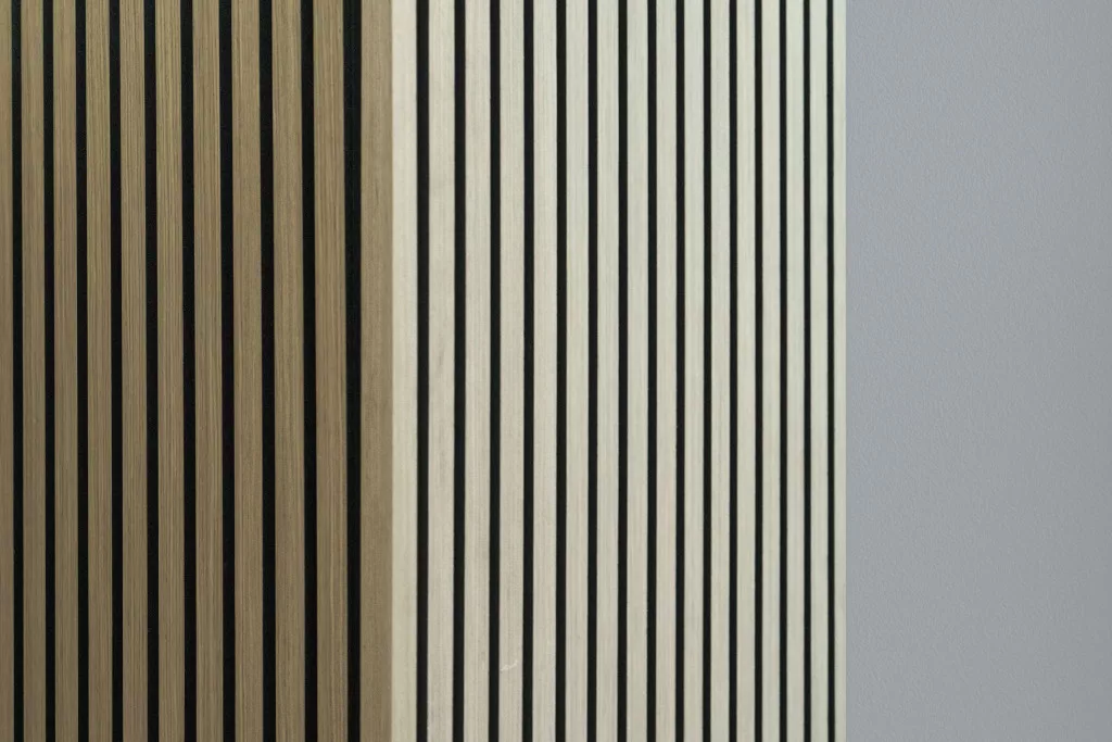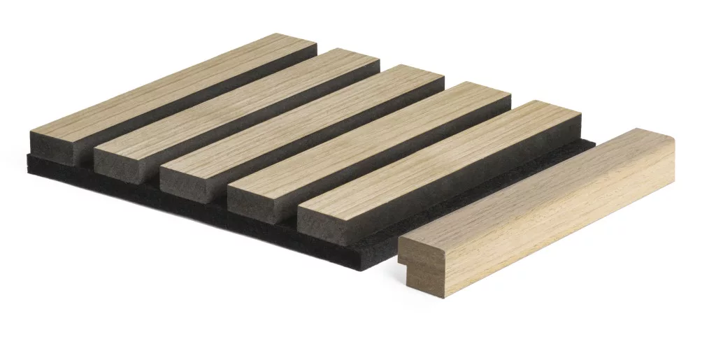 A természetes tölgy színű G21 befejező léc ideális az akusztikus panelburkolatok elegáns befejezéséhez.