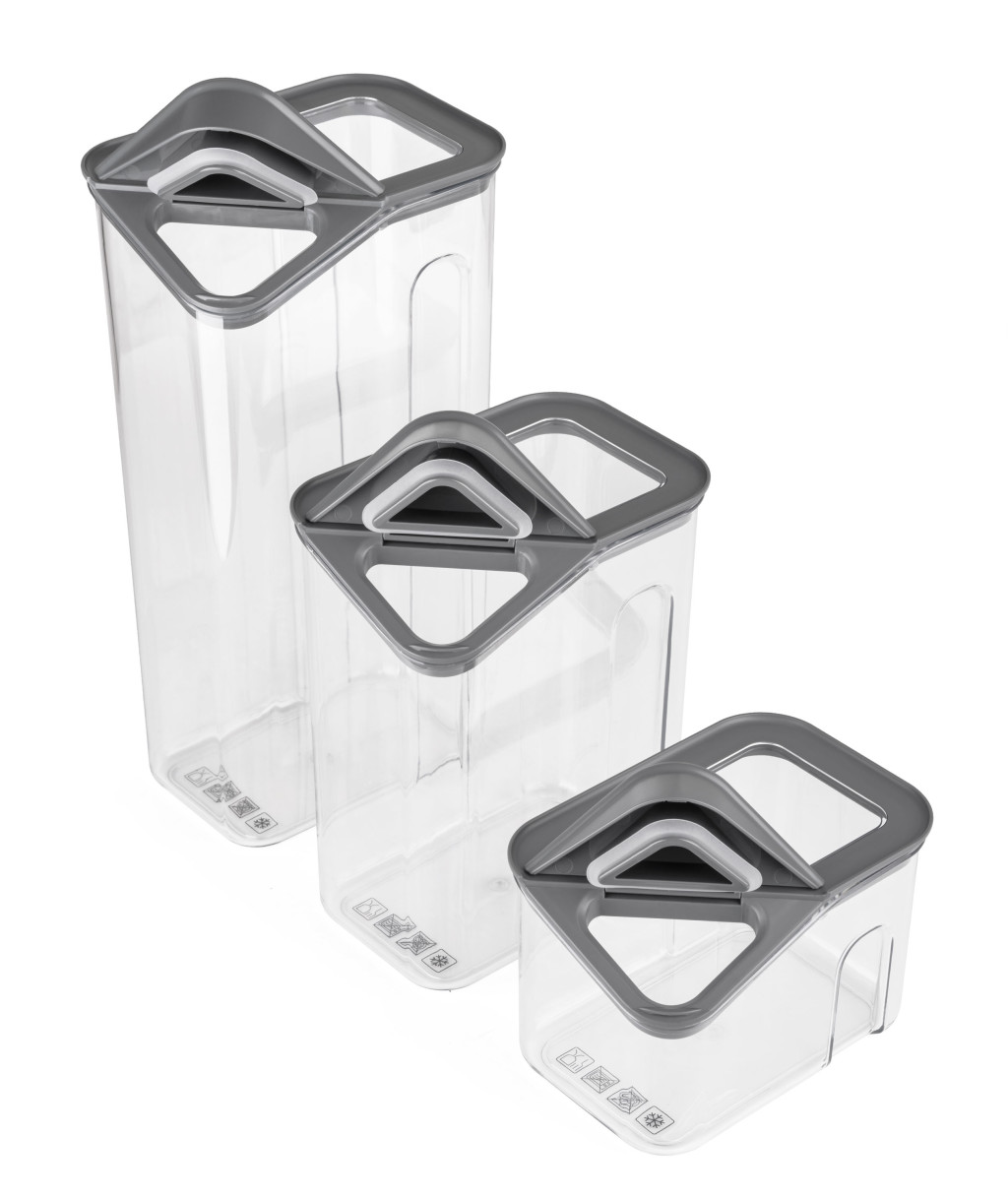 Álmodozol egy tökéletesen rendszerezett konyháról és éléskamráról? Rendet szeretnél a szekrényeidben? Tartsd rendben a konyhádat a G21 márkájú műanyag élelmiszertároló dobozokkal – a szekrényeid és hűtőd is hálásak lesznek. A készlet 3 különböző méretű, egymásra rakható dobozt tartalmaz, amelyek légmentesen záródó, felnyitható kiöntőnyílásos tetővel vannak ellátva. Ennek köszönhetően egyszerű és tiszta az adagolás. Használhatók hűtőben és fagyasztóban is – tökéletes megoldás az élelmiszerek átlátható tárolására.