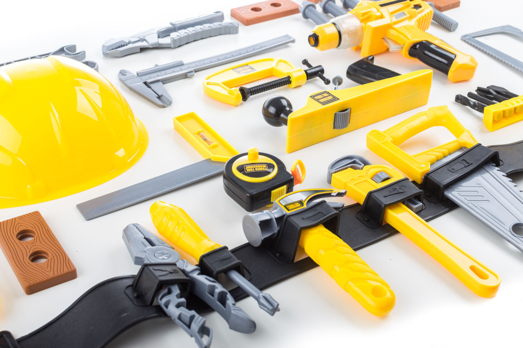 A készlet tartalmaz fúrót fúrófejekkel, kulcsokat, csavarokat, anyákat,kalapácsot, csavarhúzót,satut, fűrészt, fúráshoz alátétet, mérőeszközt,szögmérőt, tolómércét, csipeszt, védősisakot és még sok mást. Egyszóvalmindent, amire a műhelyben szükség lehet. A szerszámokkal való játékjavítja a gyerekek motorikus képességeit, türelmet tanulnak és közbenjókat szórakoznak.