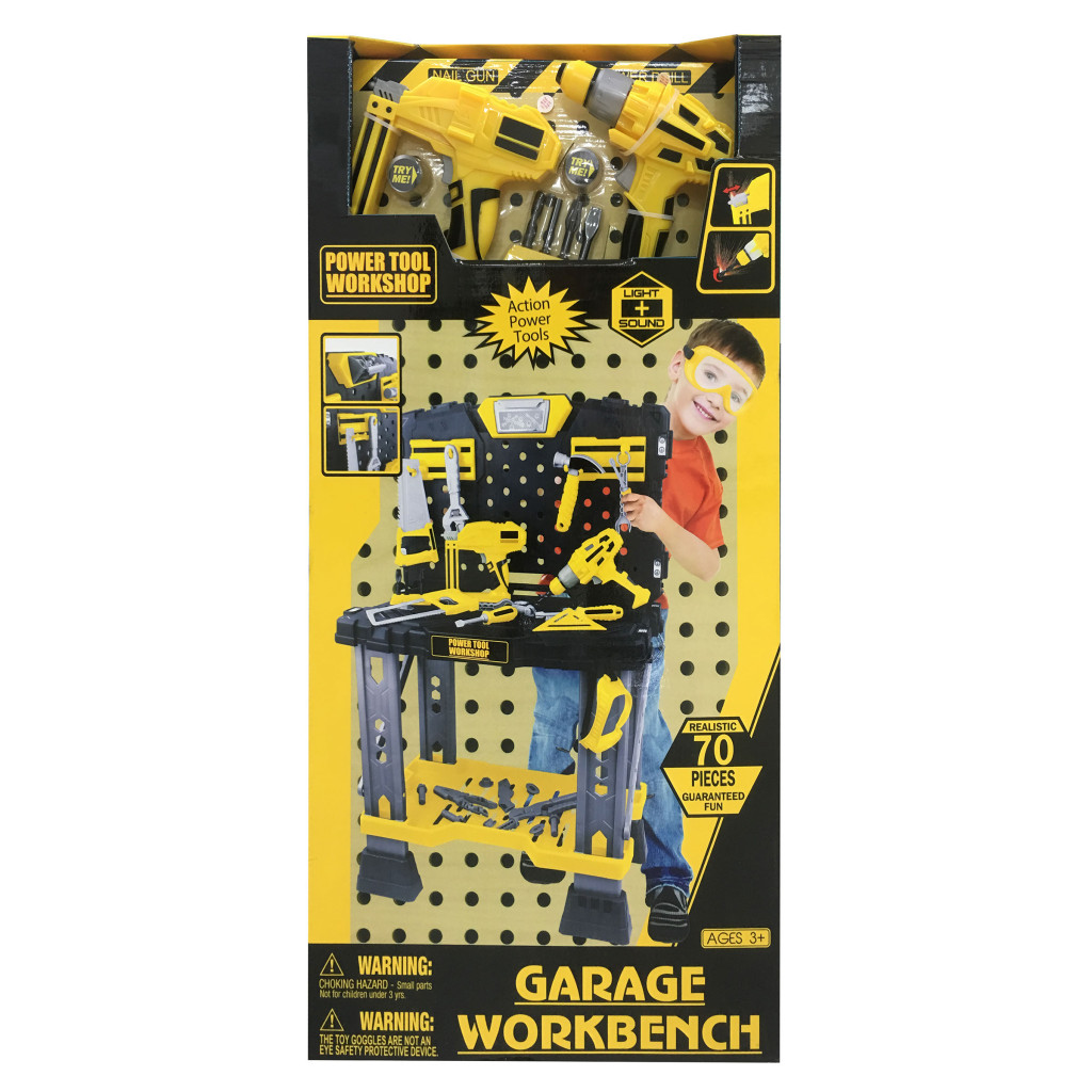 A készletben fúrógépet fúrófejekkel, szegezőgépet, kulcsokat, csavarokat, anyákat, kalapácsot, csavarhúzót, fűrészeket, fúróalátéteket, mérőszalagot, fogót, védő szemüveget és sok mást talál. Egy szóval mindent, amire a műhelyben szükség van. A szerszámokkal való játék fejleszti a gyerekek motorikáját, a türelmüket és elsősorban elszórakoztatja őket.