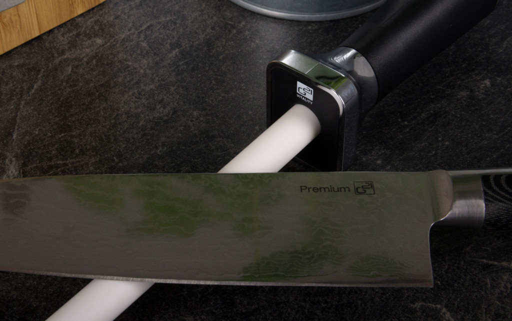 3. Ezután húzza végig néhányszor a kés élének mindkét oldalát a kerámia élezőrúd finom (#1000) felületén, és kése ismét borotvaéles lesz.