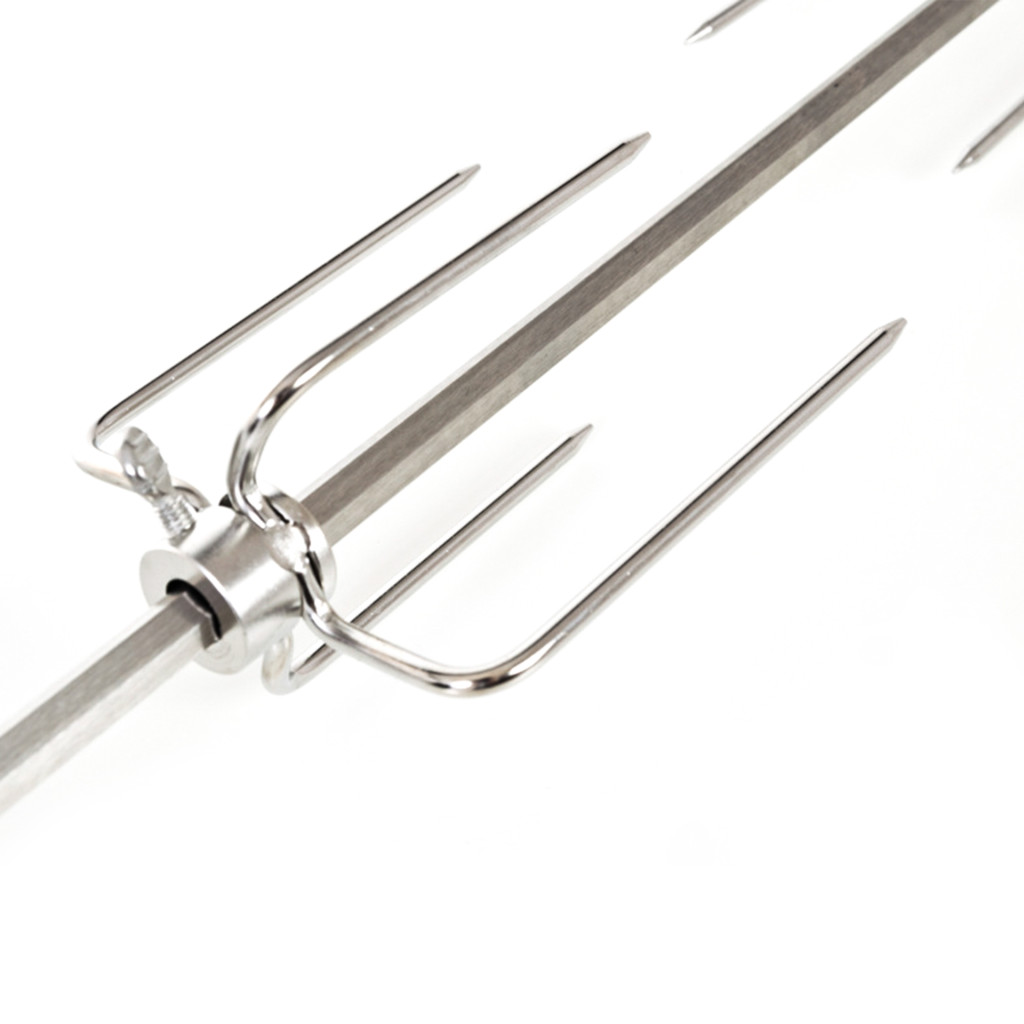 A motoros grillnyárs hasznos kiegészítő a G21 Nebraska BBQ Premium Line gázgrillhez, amellyel könnyedén elkészíthető például csirke, comb vagy más grillezett finomság. A nyárs rozsdamentes acélból készült, mindkét végén 4 állítható villa található, amelyeket rögzítőcsavarokkal igénye szerint beállíthat. A csomag tartalmaz 2 rozsdamentes szerelőlemezt is csavarokkal együtt.