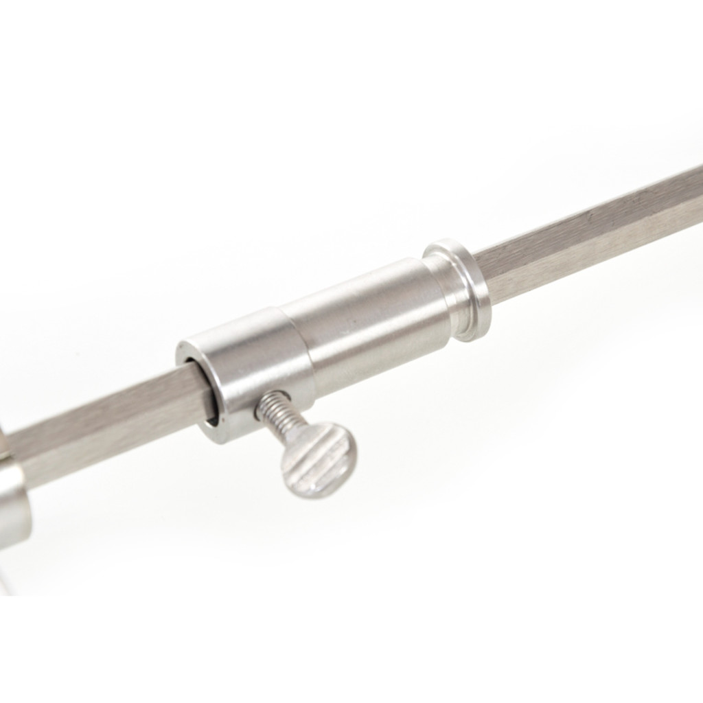 A motoros grillnyárs rozsdamentes acélból készül és mindkét oldalán négy tűvel van ellátva, rögzítő csavarokkal kiegészítve, amelyeknek köszönhetően a tűket saját igényei szerint állíthatja be.