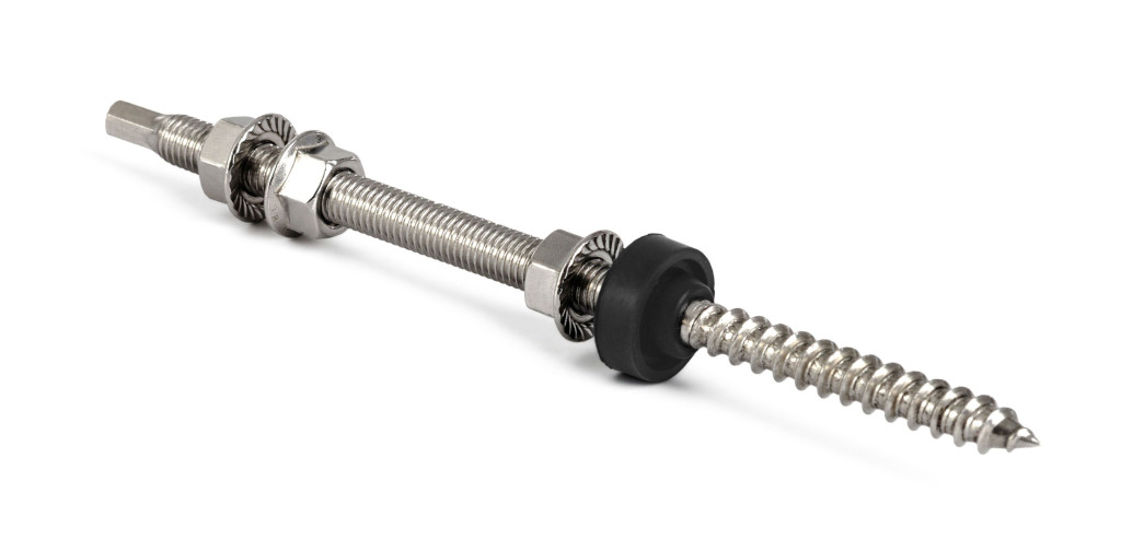 Kombinált csavar, menetméret: M10 x 250 mm, alkalmas rögzítőprofilok hullámos tetőhöz való rögzítésére, rozsdamentes acél.
