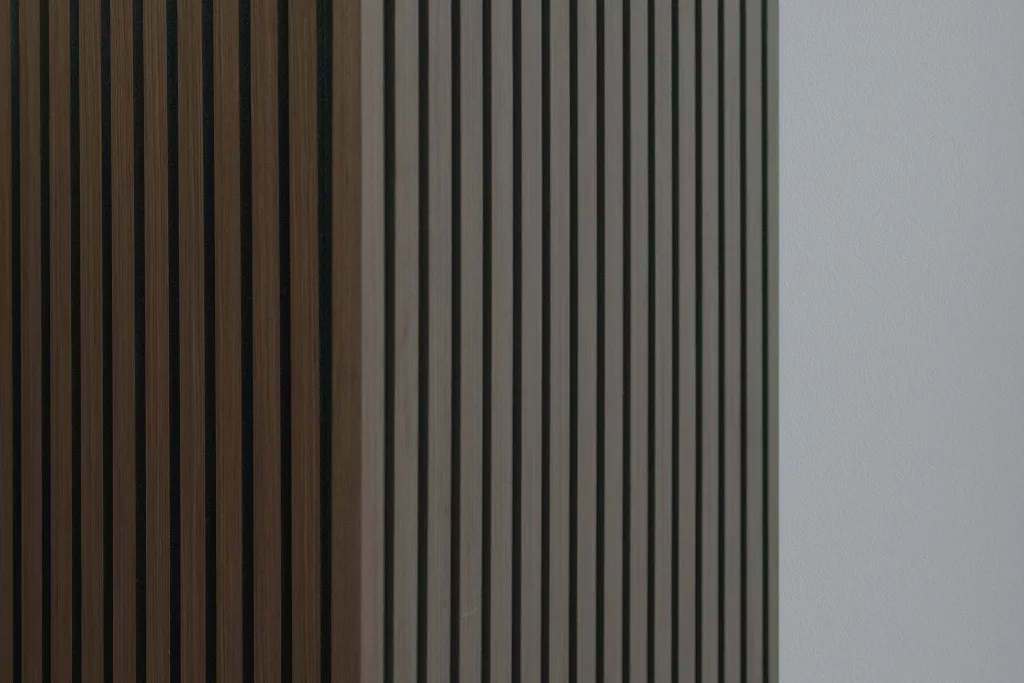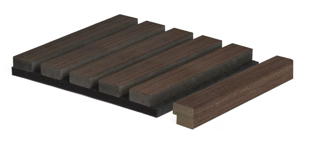 A sötét dió színű G21 záróprofil ideális választás az akusztikus panelek burkolatának elegáns lezárásához.