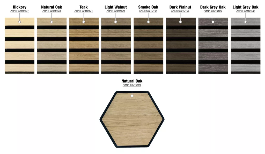 A szürke tölgy színű G21 záróprofil ideális választás az akusztikus panelek burkolatának elegáns lezárásához.