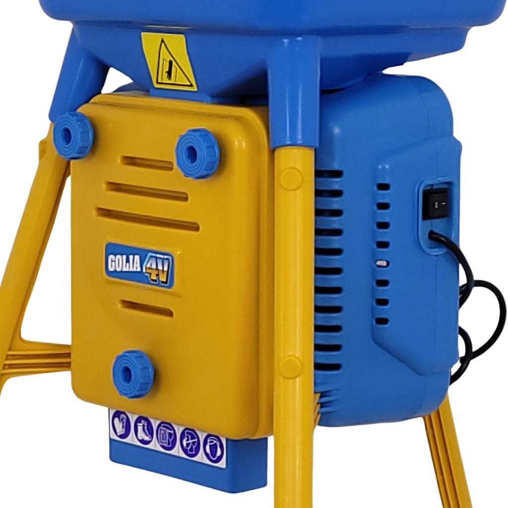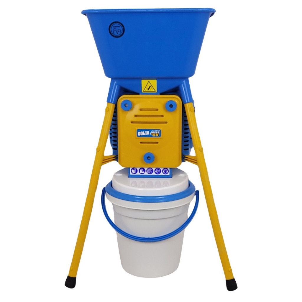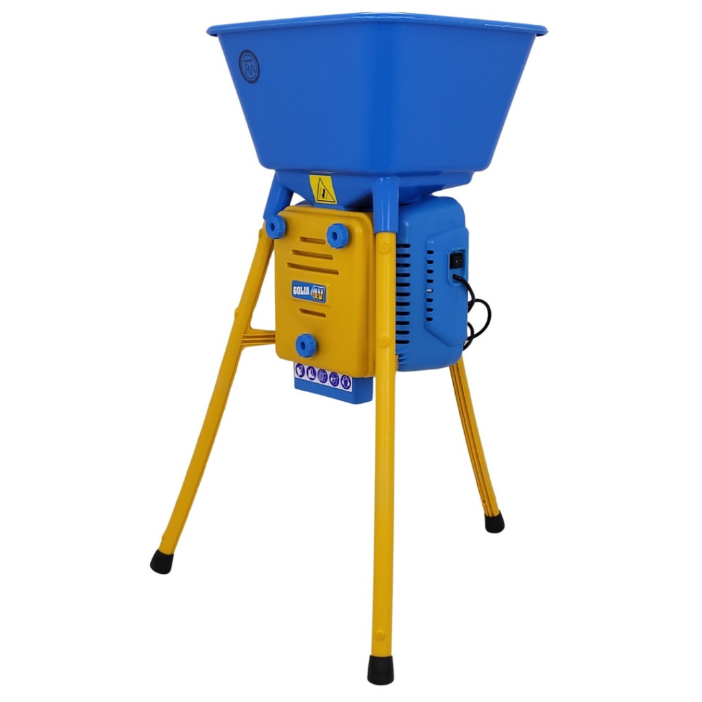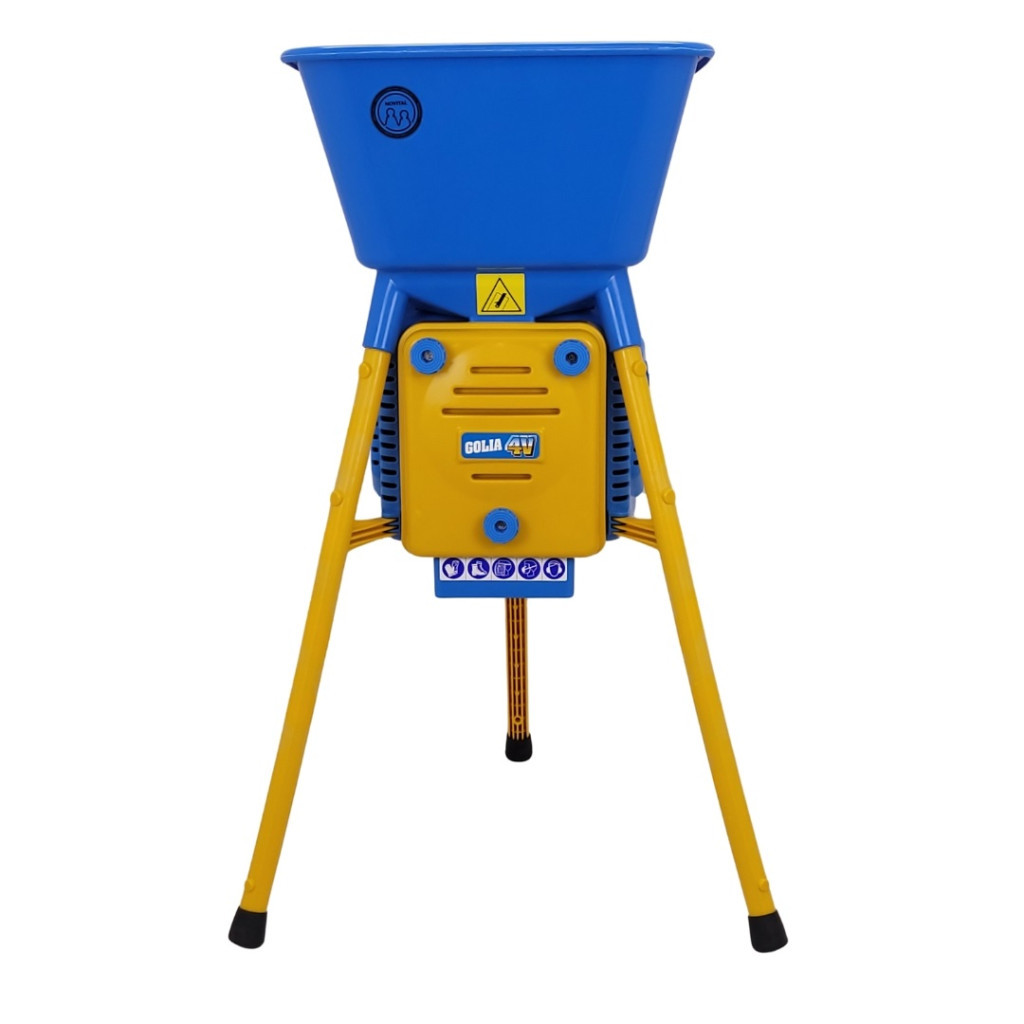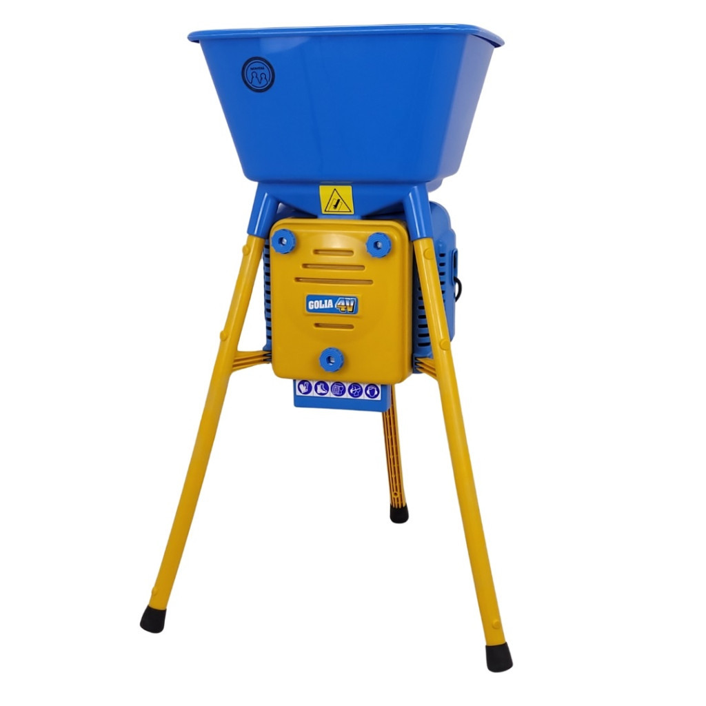 A Novital Daráló GOLIA 4V 750 W-os motorjával pillanatok alatt aprítja a kukoricát, búzát vagy árpát. A 44×48 cm-es, kék tálcába egyszerre nagy mennyiségű alapanyag tölthető, a sárga acél lábak pedig gondoskodnak a stabilitásról. 98 cm-es magassága kényelmes munkapozíciót, a 43×35 cm-es gyűjtőkonténer tiszta környezetet ad. A négy cserélhető rosta 2,5–4–6–8 mm-es granulátumot készít, így minden állatfaj igényéhez igazodhatsz.